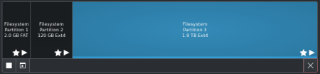 3 tečky -> Format Disk -> GPT -> Format -> Format + tlačítko -> slider na 2 gb -> type FAT -> create + tlačítko -> slider na 40-120 gb -> type ext4 -> create + tlačítko -> slider nacháme -> type ext4 -> create